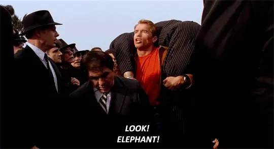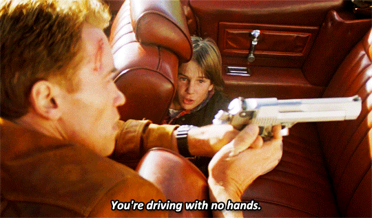 아놀드 슈워제네거는 자신이 연기해온 전형적인 액션 히어로를 패러디하며, 자기 자신(슈워제네거 본인)까지도 등장시키며 이는 슈워제네거가 자신에 대한 아이콘적 이미지를 의식하고 그것을 해체하려는 시도로 볼 수 있습니다.