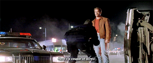 악당들이 처벌받지 않는 현실과 반드시 영웅이 악당을 응징하는 영화 속 세상을 대조시키기도 하면서 80년대에 흥행하던 여러 액션물 전체에 대해 비판과 찬사를 동시에 바치고 있습니다.