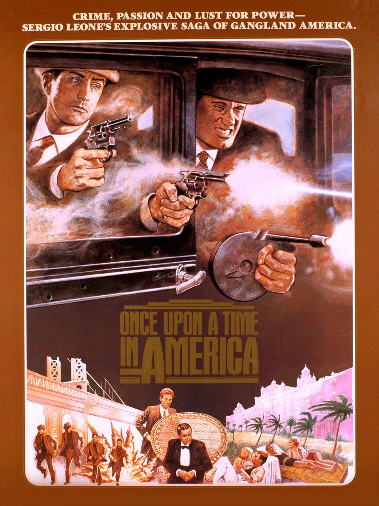 <원스 어폰 어 타임 인 아메리카>는 <원스 어폰 어 타임 인 더 웨스트>의 세르지오 레오네가 연출을, 영화사 역대 최고의 배우 로버트드 니로가 주연한 역사상 최고의 갱스터 영화 <대부> 시리즈에 필적하는 작품이며 과거의 기억, 어설픈 첫사랑, 친구들과의 우정, 허망한 아메리칸 드림, 그리고 가슴을 울리는 음악과 함께 뉴욕 뒷골목 건달들의 인생을 통해 미국 근현대사를 슬프게 회상한 대서사 드라마입니다.