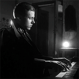 나치 군인들이 MP40으로 겨우 살아남은 유대인들을 모조리 난사하는 살육의 현장에서 동시에 독일군 장교가 아무 감정도 없는 듯한 표정으로 바흐의 영국 모음곡 2번 전주곡을 연주하는 아이러니컬한 장면은 피도 눈물도 없는 나치의 광기를 적나라하게 표현합니다.