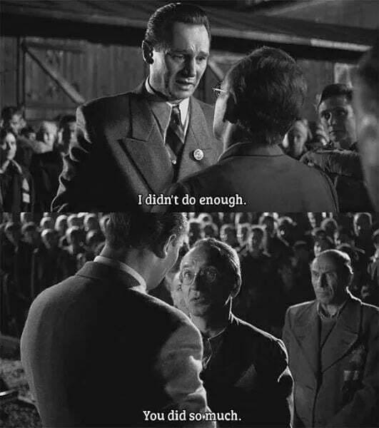 <쉰들러 리스트>는 홀로코스트를 다루고 있고, 감독인 스티븐 스필버그가 유대인이기에 유대인의 피해의식이라 반응하기도 하지만 유대인들의 피해를 다뤘다기보다는 휴머니즘과 나치의 폭력성에 더 중점을 두었고 영화속에서도 딱히 유대인들이 착하다거나 하는 묘사는 없으며 나치가 저지르는 온갖 만행들을 보여주며 주인공 쉰들러는 유대인들에게 사랑을 느꼈다기보다는, 나치에게 사악함을 느껴 엄청난 계획을 세우게되는 계기가 됩니다.