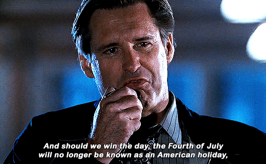 하지만 미국 대통령이 전투기를 직접 조종해서 외계인을 물리친다는 설정이 재밌는데 영화속 휘트모어 대통령은 걸프전 참전용사 출신인데 참전용사가 몇년만에 미합중국 대통령이 되었다는 설정은 상당히 어이없습니다.