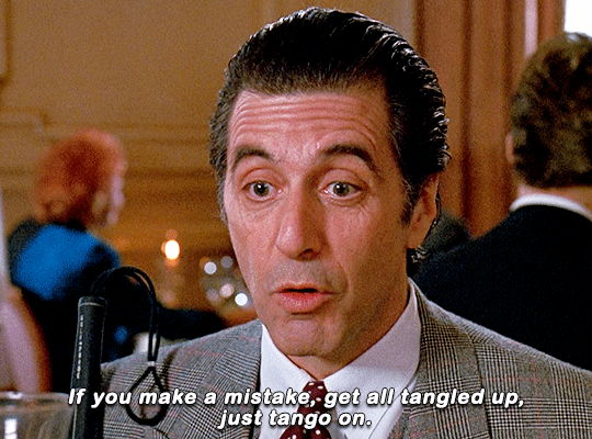 "If you make a mistake, if you get all tangled up, you just tango on."
