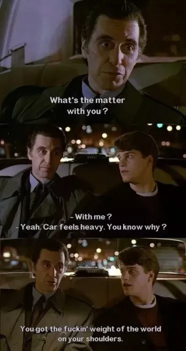 영화 역사상 역대급의 연기로 꼽히는 <대부> '마이클 꼴레오네'를 포함해 <형사 서피코>, <뜨거운 오후>, <용감한 변호사>, 그리고 <스카페이스> '토니 몬타나' 까지 알 파치노는 예술에 가까운 연기력을 선보였음에도 불구하고 단 하나의 연기상을 받지못했다는 사실은 아직까지도 이해불가의 영역이며 당장에 같은 해 찍은 <글렌게리 글렌 로스>라는 영화에서도 샐러리맨 리키 로마 역을 기가막히게 소화하며 아카데미 남우조연상 후보에 올랐는데 남우조연상도 수상했어야했다는 평단의 의견도 많았습니다.