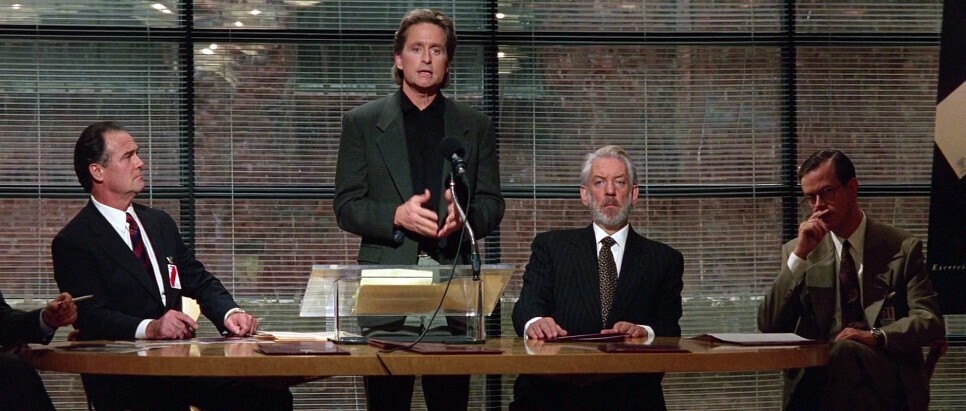 톰 샌더스(마이클 더글라스 분)는 기술 부서의 간부로 승진을 앞두고 있었지만,