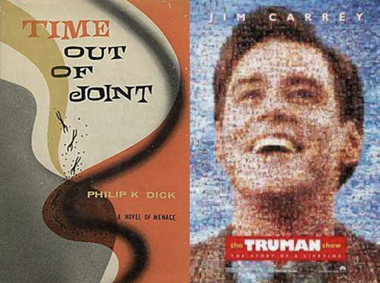 필립 K. 딕의 장편소설 "어긋난 시간(Time Out of Joint)"을 이 영화가 표절 또는 오마주했다는 주장이 있는데 실제로 주인공을 속이고 있는 주체를 할리우드에서 펜타곤으로 바꾸기만 하면 거의 똑같은 얘기입니다.