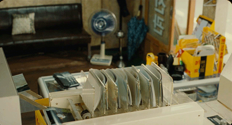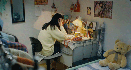 편지를 써서 사진관 문 틈에 넣어두는 모습,