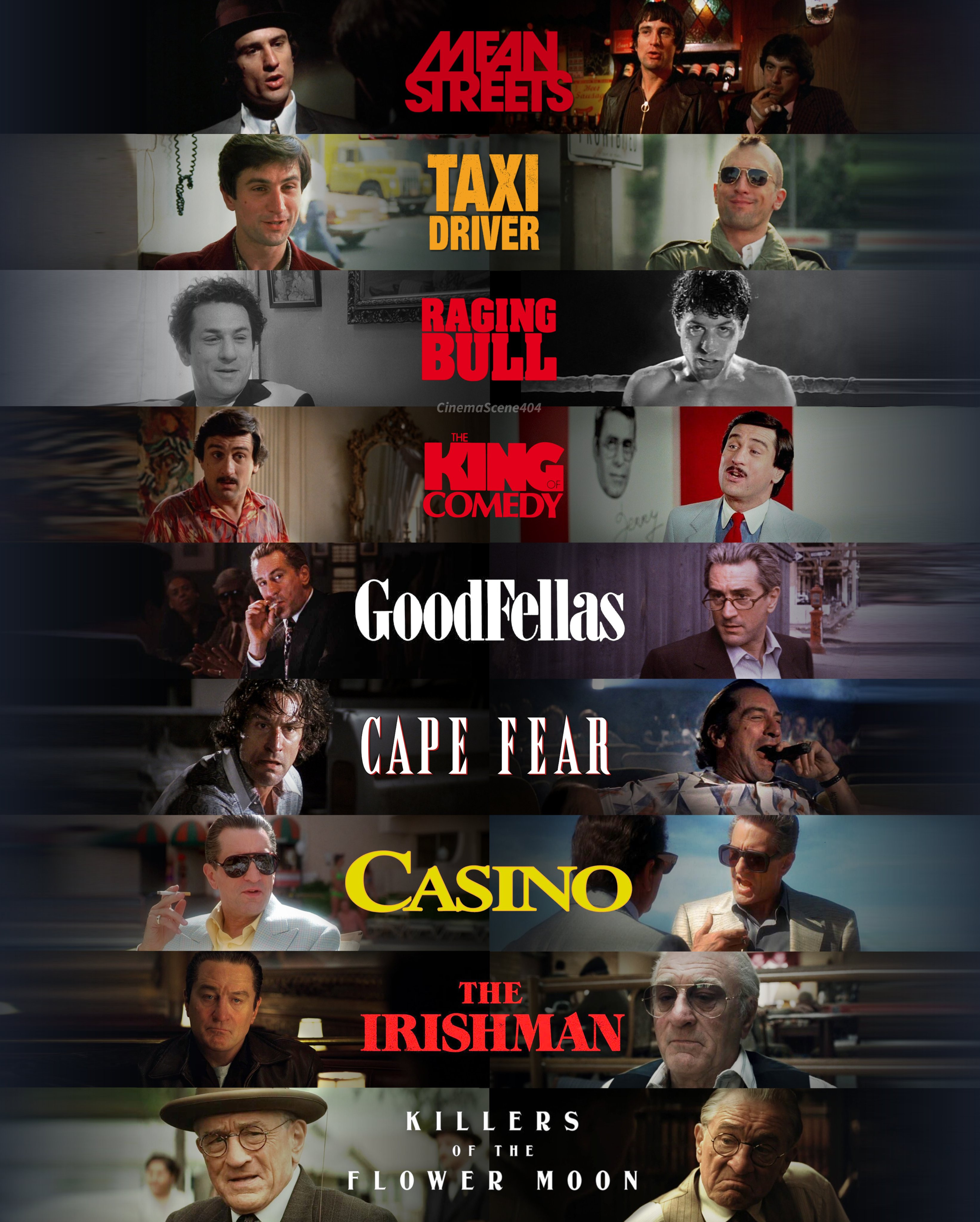 이후 마틴 스코세시와 많은 작품을 함께 하게되고, 1973년부터 1995년까지 22년간 마틴 스코세시의 페르소나 자리를 꿰찼고 스코시스와 함께 1970년대부터 1990년대에 걸쳐 많은 명작들을 남겼으며 공동으로 작업하여 시대의 걸작으로 길이 남은 <택시 드라이버>(1976년), <분노의 주먹>(1980년), <코미디의 왕>(1982년),<좋은 친구들>(1990년), <케이프 피어>(1991년), <카지노>(1995년) 등이 있으며 최근에도<킬링 더 플라워 문>(2023)을 함께 했습니다.